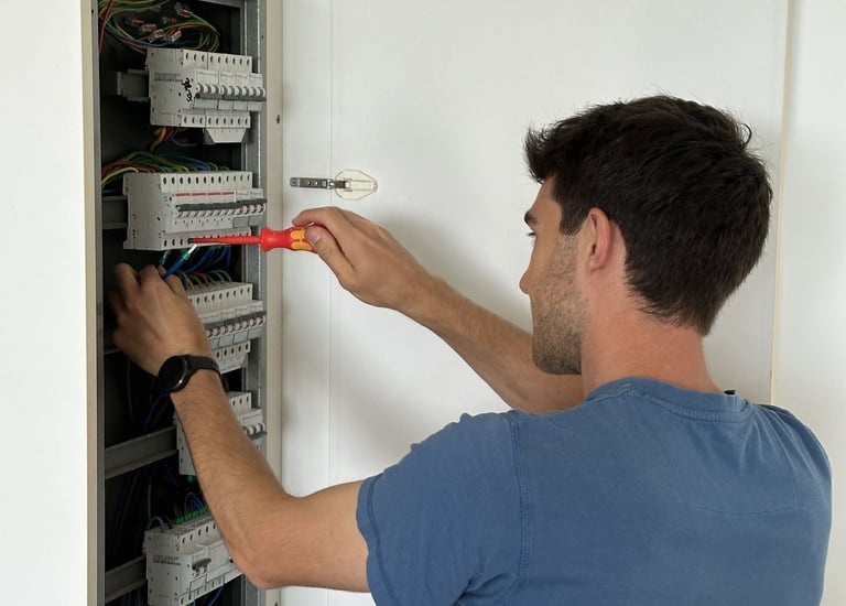 Het vervangen of herstellen van schakelaars en stopcontacten, het installeren of vervangen van verlichting, herstellen van elektrische storingen, aansluiten van huishoudtoestellen, verplaatsen van bestaande elektriciteitspunten, onderhoud van zekeringskasten, installatie van buitenverlichting.